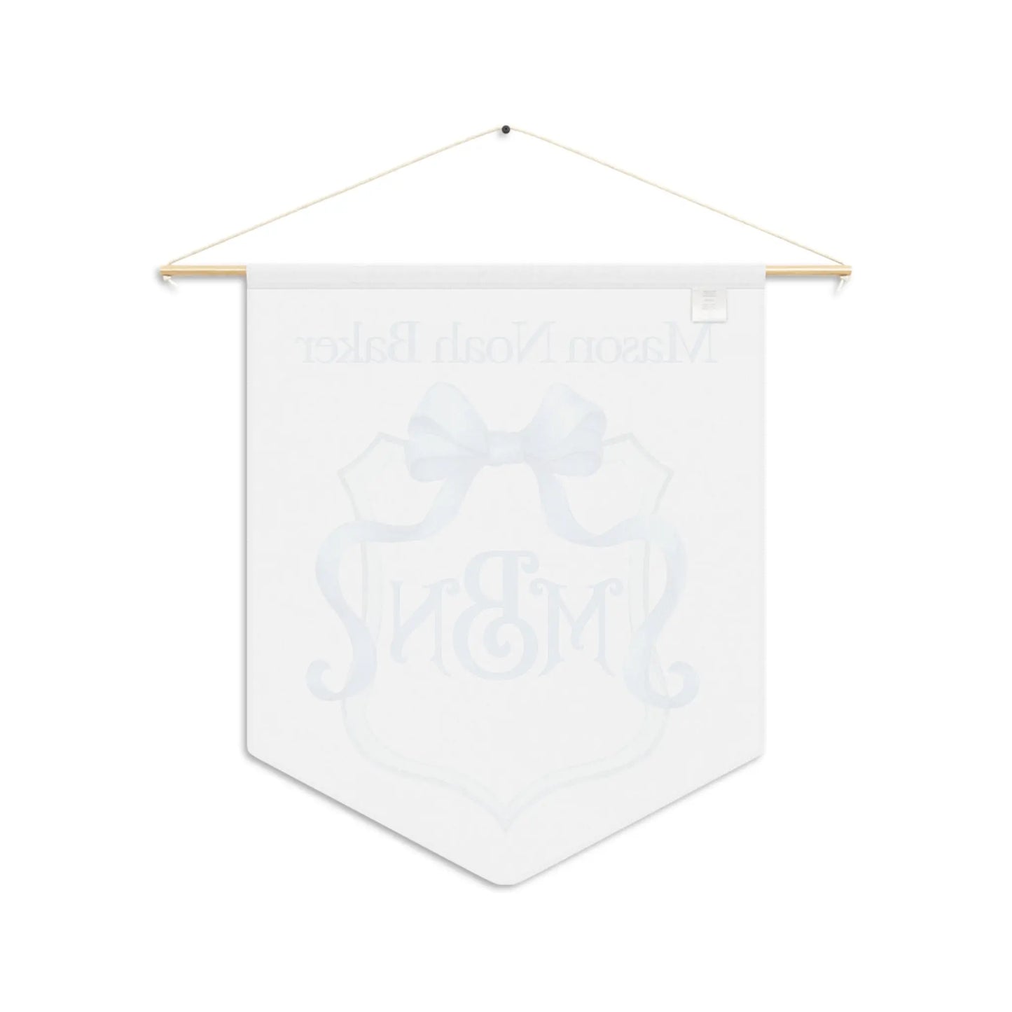 Welcome your little one in style with our Custom Baby Banner! This charming pennant features an elegant blue crest adorned with a blue bow. The centerpiece showcases your baby's monogram, while their full name is gracefully displayed at the top, making it a perfect addition to any nursery. This makes a lovely baby announcement in the hospital or for a pretty baby shower decoration.
