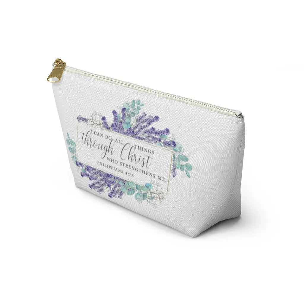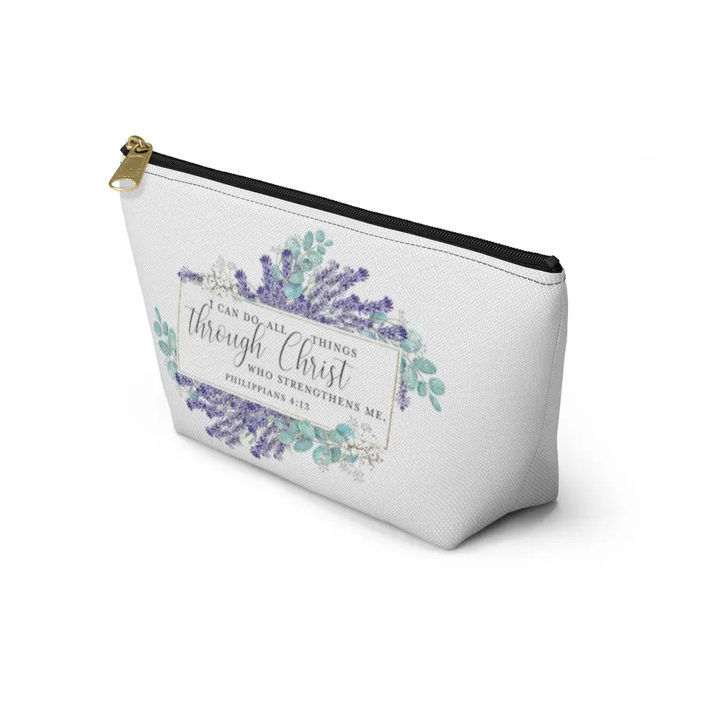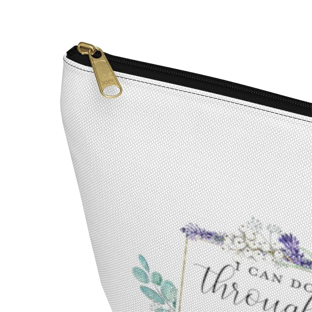This sweet scripture makeup or accessory bag is a perfect small gift for a traveler. It makes an excellent pencil cases, sewing kit and cosmetic travel bag.. They are constructed from a durable material with a zipper closure and t-bottom.