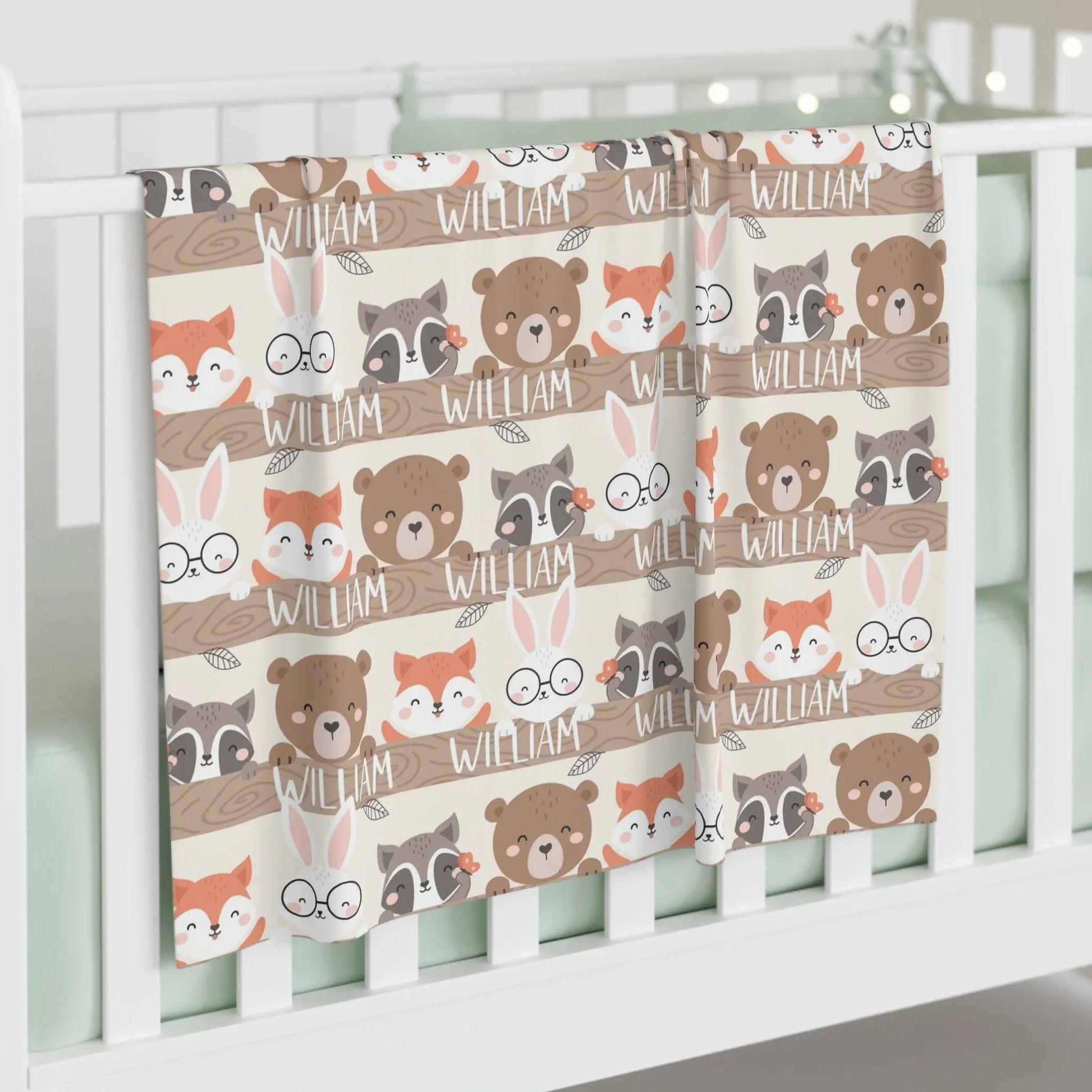 Only the finest for your little one! Wrap them in this super-soft, jersey poly personalized woodland animals blanket for a cozy rest.