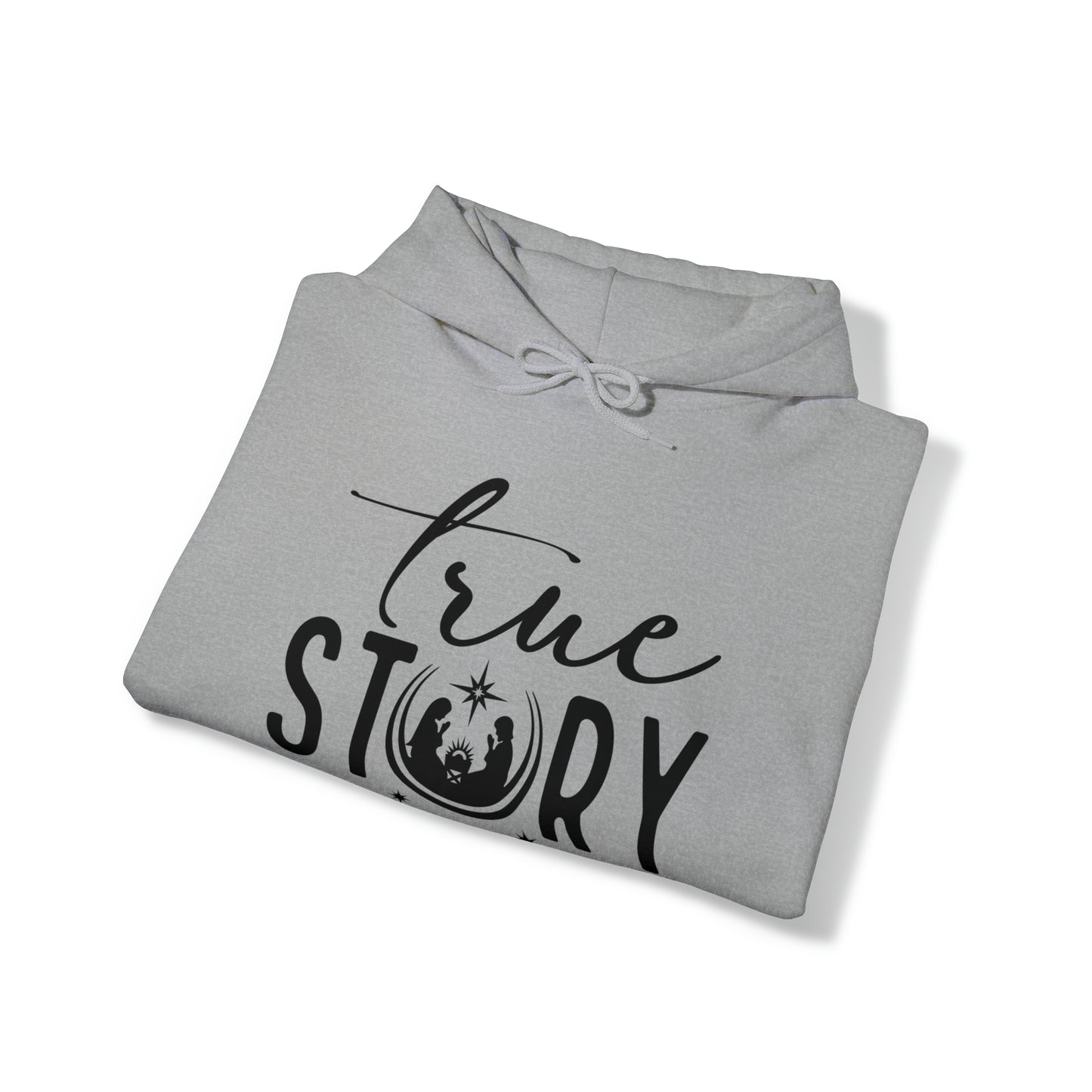 True Story Christian Christmas Hoodie Sweatshirt, a meaningful and festive Christian hoodie that beautifully depicts the nativity scene, capturing the essence of the Christmas story.